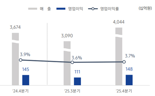 작년 4분기만 놓고 보면 매출 4조 440억원, 영업이익 1480억원으로 전년 동기 대비 각각 10%, 2% 증가했다.