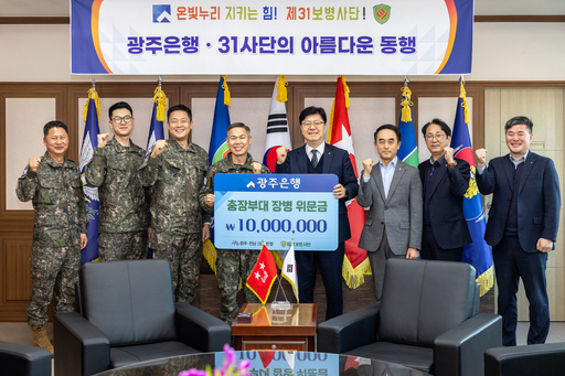 지난 12일 진행된 전달식에는 김종민 광주은행 부행장과 김도열 제31보병사단 사단장 및 관계자들이 참석했다. 전달된 위문금은 장병들의 복지 향상과 사기 진작을 위한 다양한 지원에 사용될 예정이다.