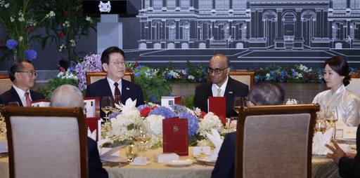 [싱가포르=서예진 기자] 싱가포르를 국빈 방문 중인 이재명 대통령은 2일 부인 김혜경 여사와 함께 타르만 샨무가라트남 싱가포르 대통령 내외가 주최한 만찬에 참석했다. 해당 만찬은 '카펠라 호텔'에서 열렸는데, 이곳은 2018년 싱가포르 북미정상회담이 열린 장소기도 하다. 이와 관련해 이 대통령은 "뜻깊다"며 한반도 평화 정책에 대한 싱가포르의 지지를 요청했다.