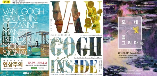 새순이 돋기 시작하는 3월, 빛을 색으로 아름답게 표현한 인상주의 화가들의 전시를 보러 미술관에 가보는 것은 어떨까. 서울 예술의전당 한가람디자인미술관에서는 반 고흐, 모네, 르누아르 등 인상주의 대가들의 진품 풍경화 67점을 한자리에서 볼 수 있는 '풍경으로 보는 인상주의' 전이 4월 3일까지 열린다. 독일 발라프 리하르츠 미술관 소장품을 중심으로 기획됐으며 인상주의 미술을 '풍경화'라는 단일 장르로 소개하는 최초의 전시다. 모네의 '팔레즈의 안갯속 집' 르누아르의 '뢰유의 센 강변 풍경' 세잔의 '엑상프로방스의 서쪽 풍경' 등 쟁쟁한 명작들을 만날 수 있다. 자연의 빛을 그대로 살려 담아낸 풍경화는 지금껏 세대를 초월해 많은 대중의 사랑을 받고 있다. 전시는 6개의 연대기별로 구성됐다. 인상주의의 시작과 발전 과정을 보다 쉽게 접할 수 있도록 인상주의의 선구자, 프랑스 인상주의, 후기 인상주의, 신인상주의, 야수파와 나비파, 독일 인상주의로 테마를 나눠 대표 작가별 작품을 전시한다. 한편 이달부터 오전 10시~오후 8시까지 전시 관람이 연장됨에 따라 오후 6시 이후 야간 관람객에게는 '반값' 할인을 진행한다. 반 고흐를 소재로 한 대형 미디어아트 전시 '반 고흐 인사이드:빛과 음악의 축제'는 문화역서울 284에서 내달 17일까지 만날 수 있다. 반 고흐의 작품을 디지털로 구현해낸 반 고흐 전시 시리즈는 2014년 서울 전시 당시 20만 관객을 동원하는 등 관심을 한몸에 받았다. 이전까지의 전시가 탈캔버스, 탈평면 등 고정관념을 깬 공간 연출로 충격을 선사했다면, 이번에는 건축물 전체, 즉 문화역서울 284를를 캔버스화했다. 돔 형식의 지붕과 화강암으로 마감된 바닥, 석재로 마감된 벽 등 외관으로 드러난 공간을 그대로 노출시킨 후 벽면, 천장, 바닥 곳곳에 설치된 다양한 크기의 스크린과 Full HD급 프로젝터로 반 고흐를 비롯한 인상주의 화가들의 명작을 재현한다. 게다가 해당 전시는 명화와 다큐멘터리가 접목된 스토리텔링 방식이라는 점에서 여타 전시회와 차이점을 둔다. '빛과 음악의 축제'라는 부제에 걸맞게 명작을 기본으로 그 속에 숨은 스토리는 물론, 영상, 음악 등 효과도 더해 시민의 눈과 귀까지 매료시킨다. 반 고흐 외에 후기 인상파 화가 8인의 작품도 추가로 선보인다. 전시 공간 외에 체험존도 마련됐다. '가상현실 컨텐츠'를 이용해 고흐의 그림 속 풍경을 가상 체험할 수 있다. '명화 전환' 포토존에서는 관람객이 직접 자신의 모습을 촬영하고, 이미지가 명화로 전환되는 것을 경험할 수 있다. 전시는 오전 10시~오후 7시까지다. 모네의 일생과 작품을 디지털 기술로 재탄생시킨 '모네, 빛을 그리다' 전은 관객의 성원에 힘입어 5월 8일까지 전시를 연장했다. 전쟁기념관 기획전시실에서 개최되고 있다. 모네가 그림을 그리기 시작한 캐리커처 작품부터 오랑주리 미술관에 전시되어있는 걸작 수련까지 400여 작품을 총 5섹션과 3개의 스페셜 존에서 만날 수 있다. 60여개의 프로젝터를 이용해 4m 높이의 거대한 스크린에 옮겼다. 전시는 비주얼 디자인, 시각적인 특수효과(VFX), 홀로그램, 3D 등 다양한 비주얼 이펙트 기술이 사용됐다. 관객들 서비스 차원에서 매일 정기적으로 11시, 2시, 4시 3회 도슨트 프로그램을 운영한다. 관람은 오전 10시~오후 8시까지다. [!{IMG::20160307000076.jpg::C::320::모네, 빛을 그리다/본다빈치}!]