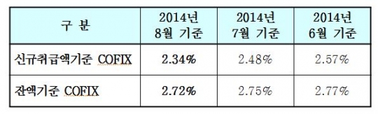 기준금리 인하 여파에 8월 신규코픽스 2.34%…도입이래 최저치 또 경신