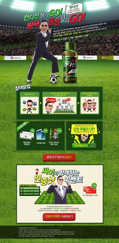 GS리테일이 운영하는 편의점 GS25는 매장에 설치된 GSTV를 통해 대한민국 전 경기를 생중계한다. GS25는 한국시간으로 18일 아침 7시에 진행되는 대한민국과 러시아와의 경기를 시작으로 23일 오전 4시 알제리전과 27일 오전 5시 벨기에 전을 모두 생중계 할 계획이다. 또 GSTV는 매일 주요 경기 하이라이트도 송출함으로써 축구를 즐기는 고객들을 즐겁게 할 계획이다. 대한민국 축구 대표팀의 승리를 기원하는 응모 및 할인 이벤트도 진행한다. GS25는 2002년의 영광 재연을 기원하는 마음을 담아 오는 17일까지 GSTV에서 송출되고 있는 '2002 월드컵 베스트 세레머니' 영상을 보고 #7878로 최고의 세러머니를 보내주는 고객 중 추첨을 통해 10명에게 뮤지컬 '모차르트' 티켓(1인 2매)을 선물하는 이벤트와 함께 대한민국 경기 당일에는 GSTV를 통해 영화 티켓 선물 이벤트도 벌인다. GS수퍼마켓도 17일 하루 동안 상품 전 품목에 대해 POP카드로 결제 시 20% 현장 할인 판매한다. (법적으로 할인을 제한하는 주류, 담배, 쓰레기 봉투 및 상품권 제외, 양곡10~20kg은 2000원 정액 할인) 또 GS수퍼마켓은 BC카드와 손잡고 대한민국 경기가 있는 전날 오후 5시부터 영업 종료 시까지 수입맥주 전품목, 과자 스낵류 전품목에 대해 BC카드로 1만원 이상 결제 시 20% 청구할인 이벤트를 진행한다. GS25 역시 대한민국이 승리하기를 바라는 마음을 담아 BC카드와 손잡고 대한민국 경기 전일 오후 6시부터 경기당일 새벽 6시까지 수입맥주와 안주류에 대해 50% 청구할인 이벤트를 진행한다. 대한민국 16강 진출 확정 시에는 지난 대한민국 경기 일에 GS25에서 POP카드로 3000원 이상 구매했던 모든 고객에게 아이스크림 기프티콘을 모바일로 선물한다.(단, 1일 1건으로 제한, POP카드 회원 가입되어 있는 고객이어야 전송 가능) 아울러 GS25는 경기가 끝난 후 이른 아침 식사를 원하는 고객들이 알뜰하게 식사를 할 수 있도록 이달 30일까지 매일 아침 7시부터 9시까지 2시간 동안 도시락·김밥·주먹밥·샌드위치 등 FRESH FOOD 모든 상품에 대해 BC카드로 1500원 이상 결제한 고객에게 20% 청구할인 혜택을 제공하는 '아침식사 드시고 힘내세요' 행사를 진행한다. BC모바일카드 (NFC)로 결제 시에는 30% 청구할인이 진행된다. GSTV를 운영하는 권기환 GS넷비전 국장은 "GSTV의 대한민국 축구 생중계와 GS리테일이 진행하는 다양한 이벤트는 대한민국 축구 대표팀을 응원함과 동시에 대한민국을 응원하는 마음으로 준비했다"며 "여러가지 힘든 일로 시름에 빠진 대한민국에 활기가 찾아 오길 바란다"고 말했다.